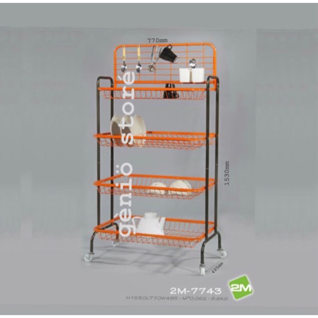 3V 4 tier multi purpose kitchen plate rack with rollers . Sumber Gambar : shopee.com.my