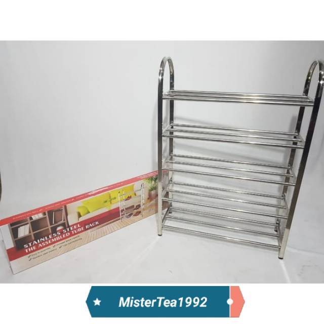 Jual KB Rak Tempat Sepatu Sandal Stainless Steel 5 Susun . Sumber Gambar : www.bukalapak.com