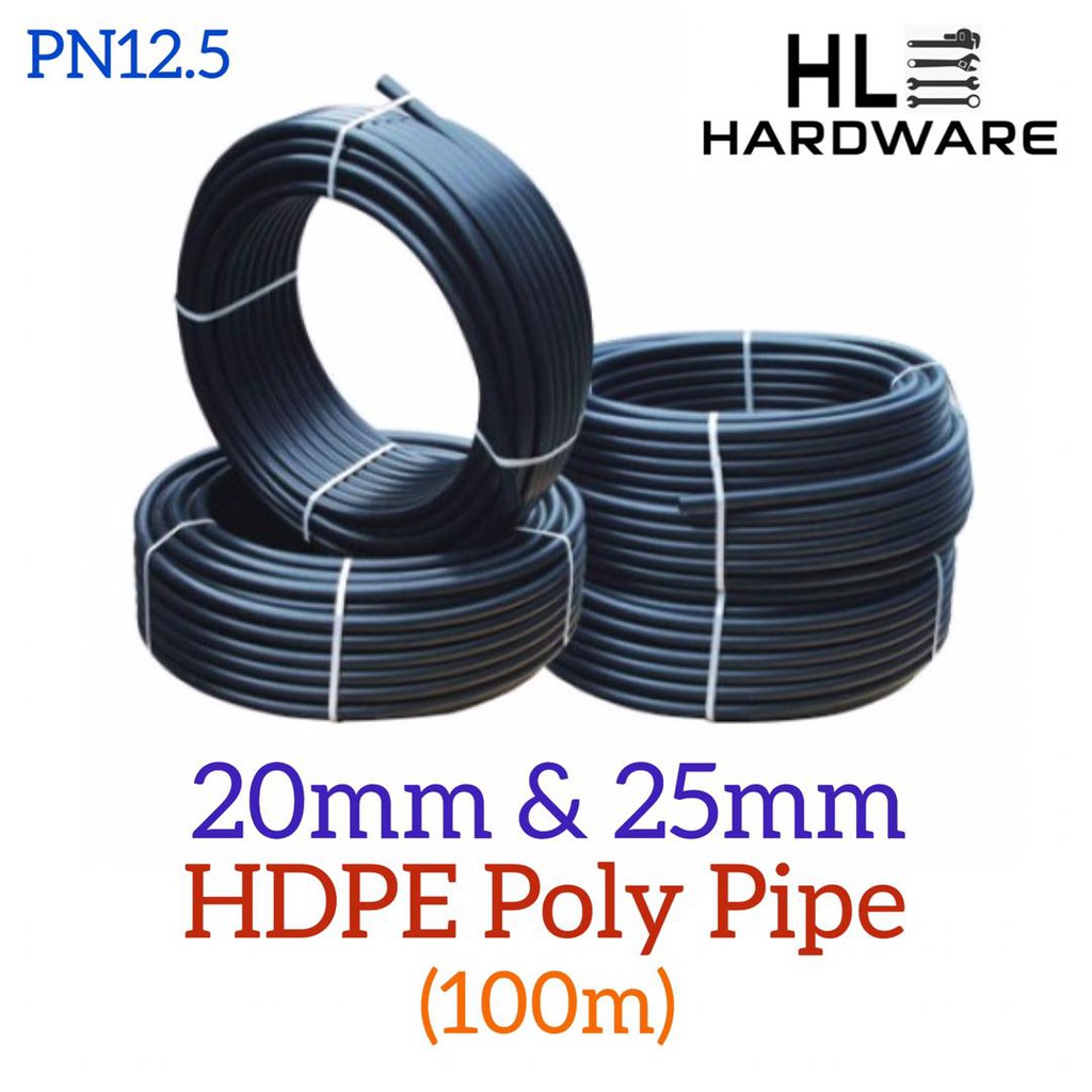 HDPE Poly Pipe PN12 5 x100m 20mm 25mm Poly Paip Tebal Sumber : shopee.com.my